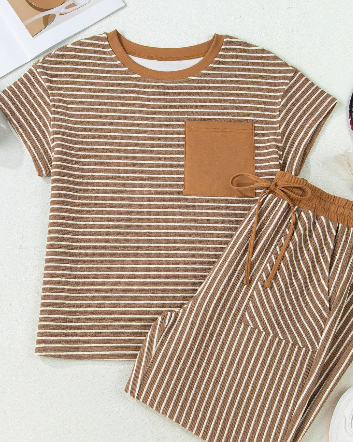 The Rose Set is the perfect lounge set, featuring a soft textured fabric and subtle stripe pattern for an elevated cozy look. Comfortable yet cute, it’s ideal for relaxing at home or running casual errands.