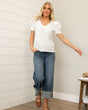 Sweet and simple, the Jenna Top is one of those pieces you can wear anywhere. The soft textured fabric and subtle puff sleeves dress it up just enough, while still keeping it comfy for everyday wear. Easy to pair with denim, shorts, or skirts for a clean classic look.
