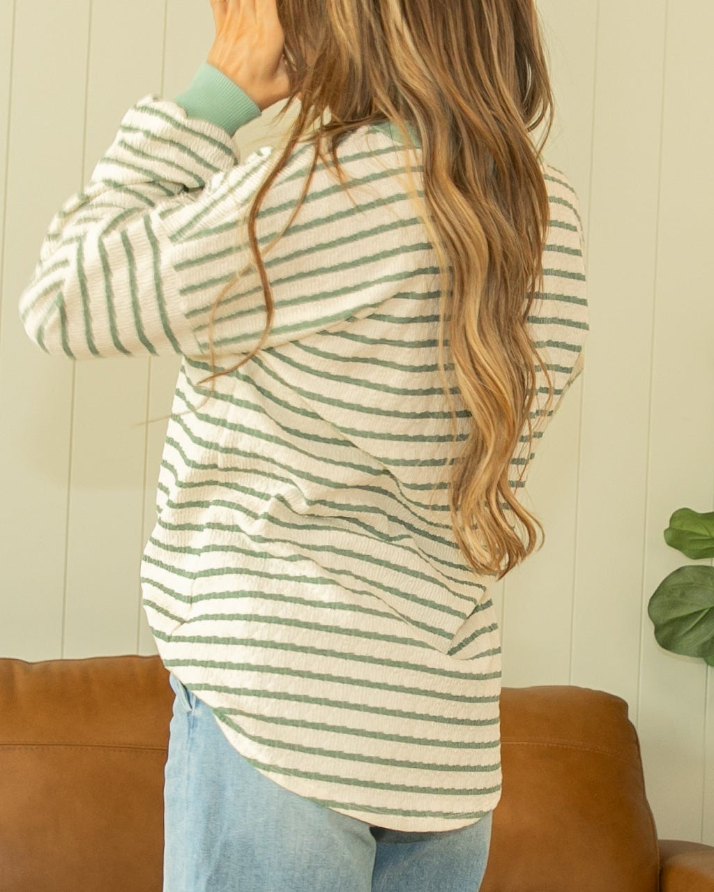The Miley Top is the perfect blend of comfort and style. Featuring a soft textured fabric and subtle stripe pattern, this oversized top brings an effortless, relaxed vibe to any outfit. Pair it with jeans for a cute, easy-going look.