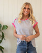 The Suzie Top is the perfect everyday tee with a fun pop of color. The classic stripe keeps it simple while the bright contrast trim adds just enough personality. It’s lightweight, comfy, and easy to throw on with jeans, shorts, or layers.